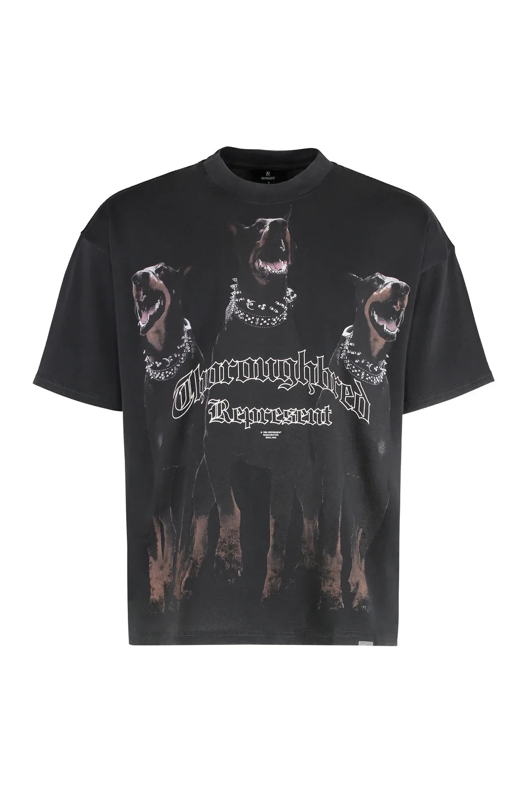 חולצת טי בגזרת אוברסייז מבית Represent, עשויה כותנה בצבע שחור בשילוב הדפס גרפי עם לוגו המותג.